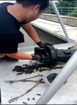 在檢修過(guò)程中,機(jī)修人員不怕臟、不嫌臭,直接下手將堵塞物、葉輪纏繞物一一清理出來(lái),完美詮釋了污水人“一絲不茍、精益求精”的工作作風(fēng)和優(yōu)良傳統(tǒng)。正是有這么一群可愛的人,在平凡的崗位默默奉獻(xiàn),才保證了污水系統(tǒng)各個(gè)環(huán)節(jié)設(shè)備設(shè)施的正常運(yùn)行,進(jìn)而保證了出水水質(zhì)的穩(wěn)定達(dá)標(biāo)(張曉偉)。