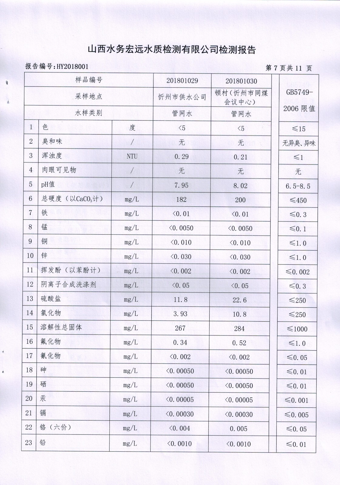 忻州城區(qū)公共供水水源水、出廠水、管網水、管網末梢水2018年1月份水質信息公示