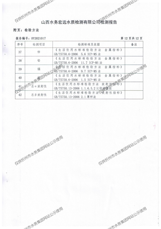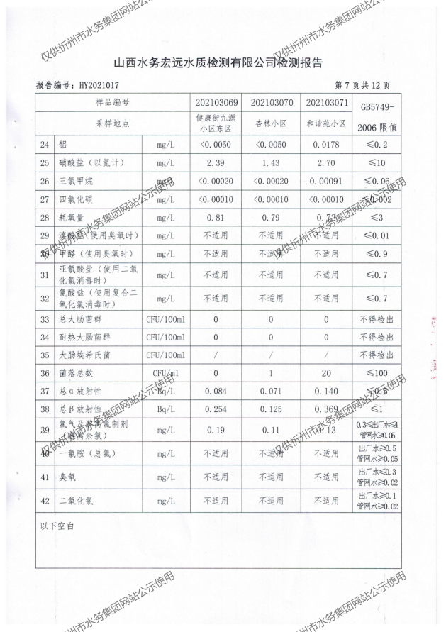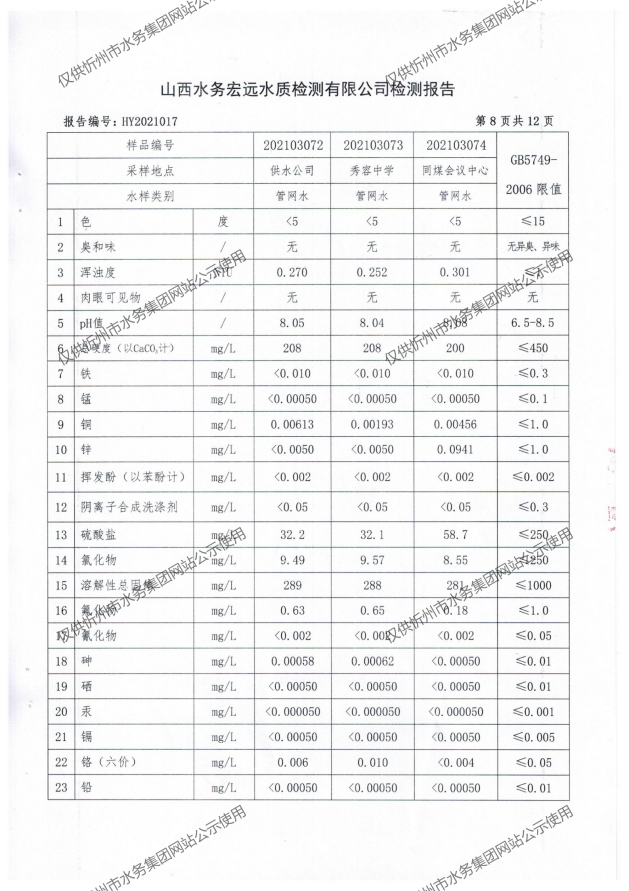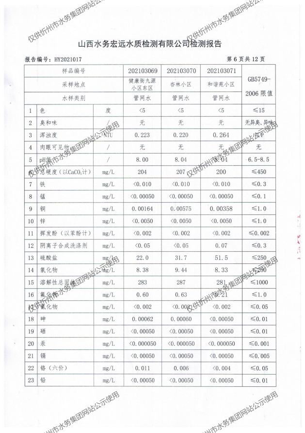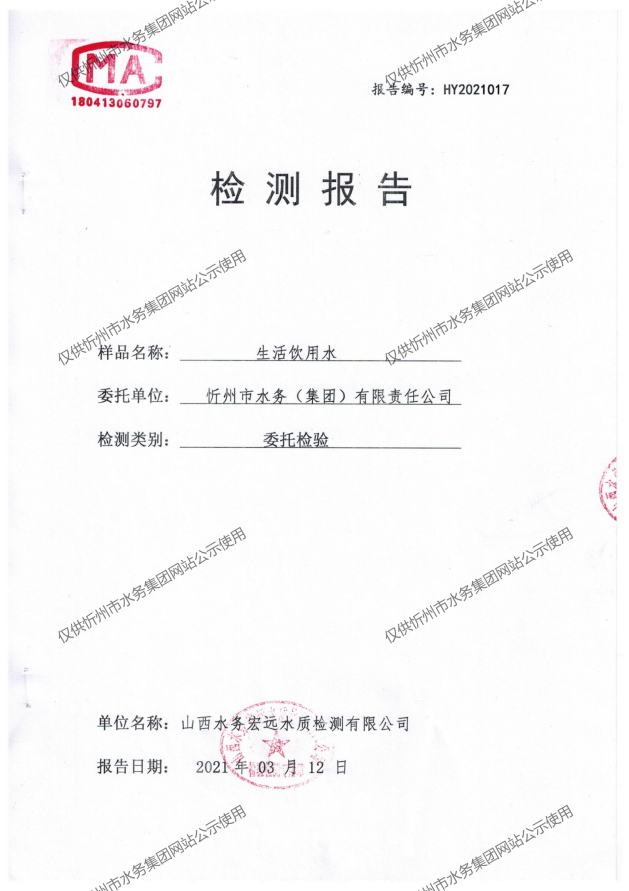 忻州城區(qū)公共供水水源水、出廠水、管網(wǎng)水、管網(wǎng)末梢水2021年3月份水質(zhì)信息公示