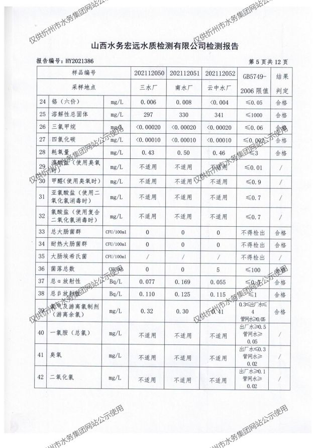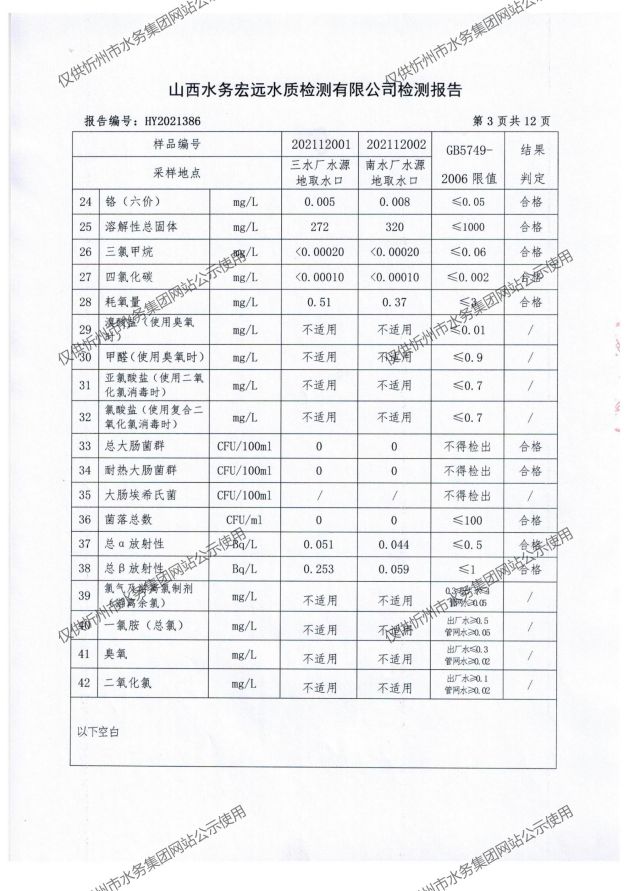 忻州城區(qū)公共供水水源水、出廠水、管網(wǎng)水、管網(wǎng)末梢水2021年12月份水質(zhì)信息公示