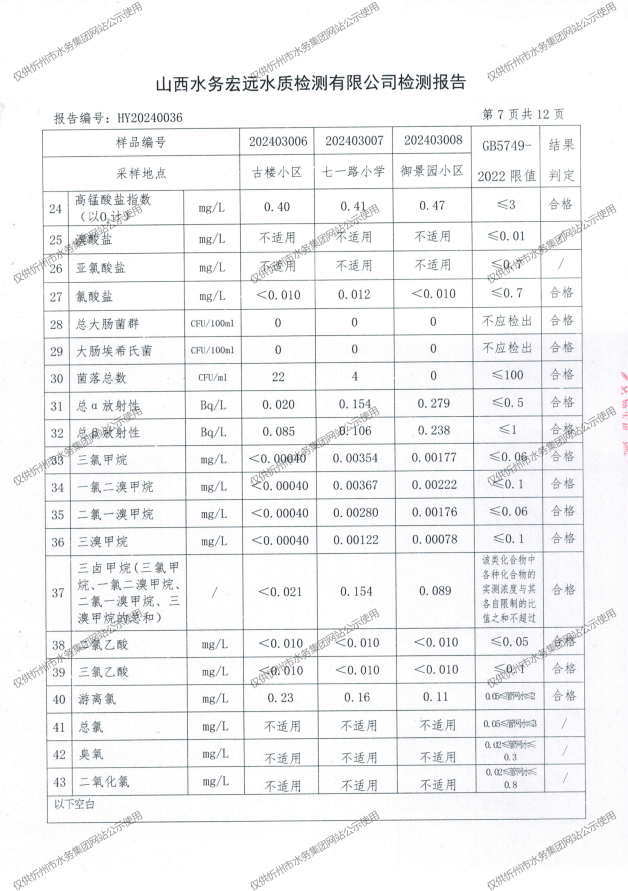 忻州城區(qū)公共供水水源水、出廠水、管網(wǎng)水、管網(wǎng)末梢水2024年3月份水質(zhì)信息公示